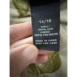 Material: Lightweight woven shell on both pieces in 100% silk with smooth 100% polyester lining in the skirt (per interior content tags).