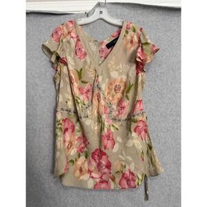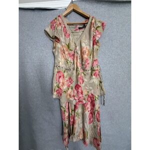 Lane Bryant Silk Skirt Top Set Womens 2X Beige Pink Floral Lace 2 Piece Outfit