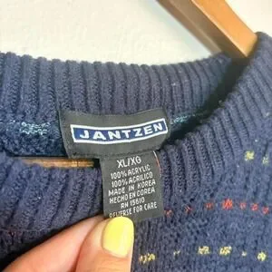 Vintage 90s JANTZEN Men's XL 3D Knit Sweater Grandpacore Chunky Gorpcore
