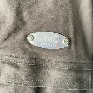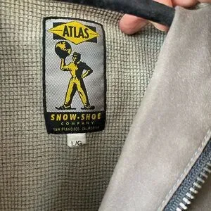 • Distinctive "Atlas Snow-Shoe Company" metal logo plate on chest