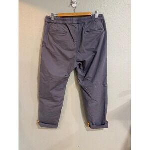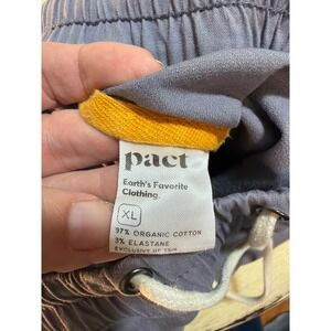 Embrace effortless comfort with these Pact organic cotton blend pants, designed for a relaxed yet polished look. These versatile trousers feature a comfortable elastic waistband with an adjustable drawstring, large front patch pockets, and a subtle tapered leg that looks great cuffed to reveal a pop of yellow contrast tape. Crafted from a soft, breathable twill with a hint of stretch, they are perfect for casual outings or elevated lounging. This pre-owned pair shows gentle signs of wear but remains in great condition for its next home.