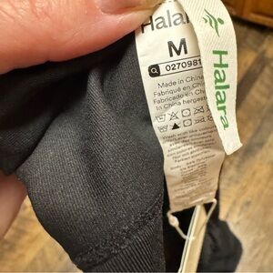 Soft black fabric with subtle ribbed hem. Wide straps and clean neckline. Branded HALARA tag detail. Comfortable, sporty fit. Super cute crisscross front detail for ultimate fit. Light athletic material. Please let me know if measurements are needed.