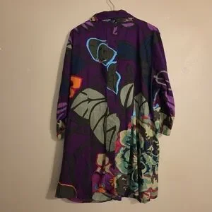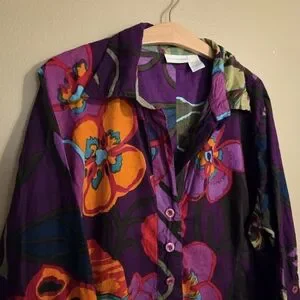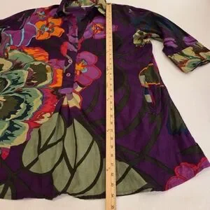 SOFT SURROUNDINGS Sadie Purple Multicolor Floral Print Cotton ¾ Sleeve Tunic 2X