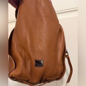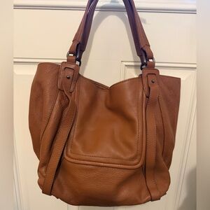 Kooba Jonnie beautiful leather hobo shoulder bag featuring a woven front panel and gunmetal hardware. Stylish tan woven leather shoulder bag with a front flap detail. Soft pebbled leather and braided weave create a refined, textured look. Comfortable double straps for easy shoulder carry. Versatile design that complements casual and polished outfits. Like new.