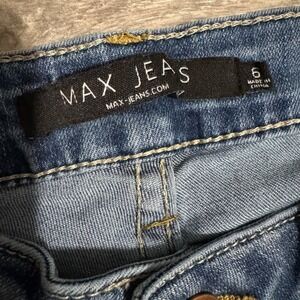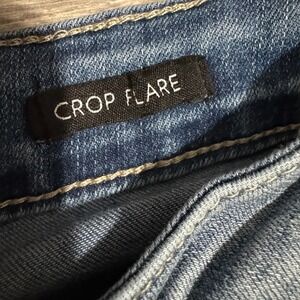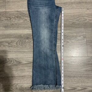 Max Jeans Low Rise Size 6 Medium Wash Frayed Hem Crop Flare Denim 28x24 Blue Y2K