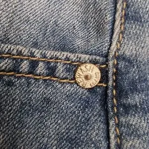 High-rise silhouette with classic five-pocket styling.