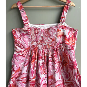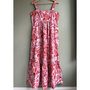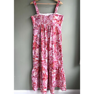 LONDON TIMES Floral Tiered Maxi Dress Square Neck Sleeveless Smocked Pink Red 12