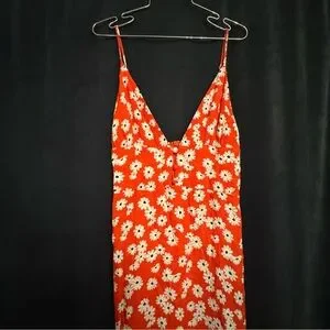 Reformation Red Orange Daisy Slip Dress Montague Dress in Oopsie Daisy Size 6