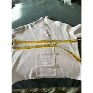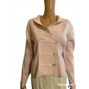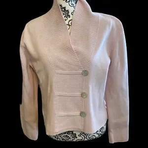 Soft knit cardigan with a wide SHAWL COLLAR Three front BUTTONS for closure. Subtle RIBBED panel detail down the front. Lightweight, feminine silhouette. SOPHISTICATED, classic fit; LIGHT PINK; CROPPED FIT; size XL