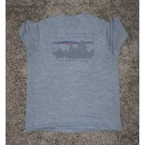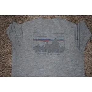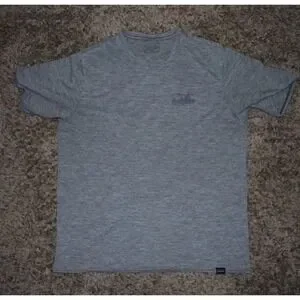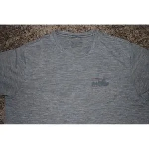 Up for sale is a Patagonia men's performance T‑shirt in size Medium, gray, featuring the classic Patagonia logo. The item is used and shows normal wear, but remains in good overall condition. Please review all photos for the exact condition.