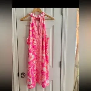 In good condition! Chic pink dress with bold floral design. Ideal for sunny days.