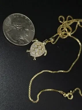 ✨ Moissanite Turtle Necklace – Gold Filled – 20” Box Chain – Luxury Sparkle ✨