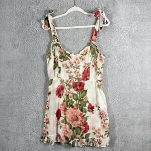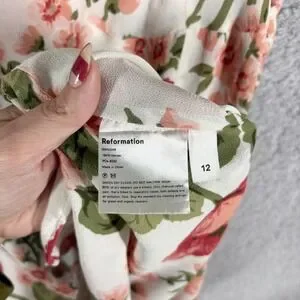 Reformation Christine Dress Etienne Pink Floral Size 12 White Ruffle Sweetheart