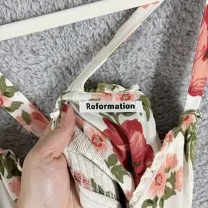 Keywords: Cottagecore, Coquette, Romantic, Summer, Wedding Guest, Garden Party, Boho, Feminine, Sustainable Fashion, Floral Print, Sundress, Whimsical, Reformation Dress