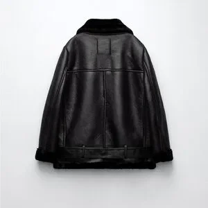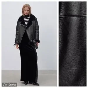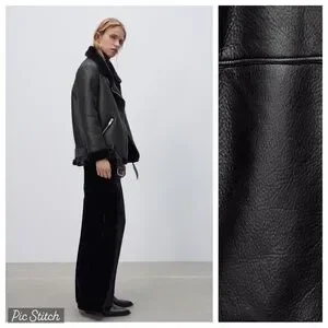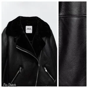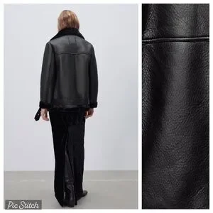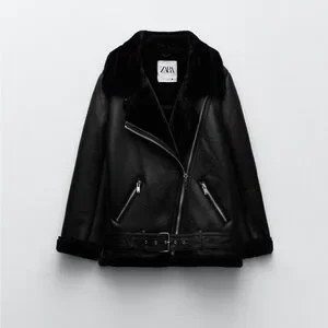 Zara Black Faux Leather Shearling Biker Jacket