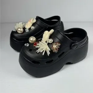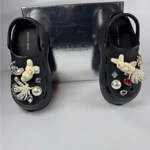 Azalea Wang Davies Black Platform Clogs Charm Decorated NIB