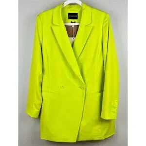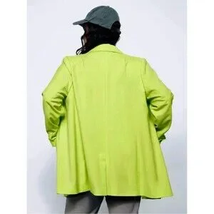 Wildfang The Empower Blazer Womens Neon Lime Green Double Breasted Long