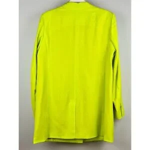 Keywords: Wildfang blazer, The Empower, neon lime green, chartreuse jacket, women’s large, long blazer, double breasted, button front, notch lapel, lined blazer, polyester lining, relaxed fit, flap pockets, back vent, statement jacket
