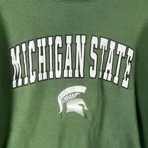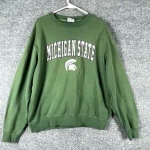 VTG Michigan State Spartans Sweatshirt Mens large Green Embrodiered Faded Y2K