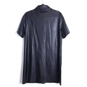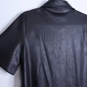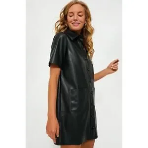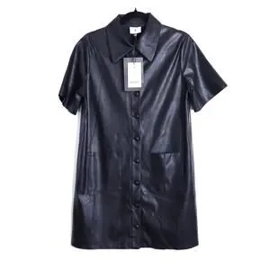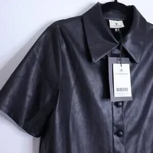 TUCKERNUCK NWT Leather Violetta Shirt Dress Black Short Sleeves Women's M