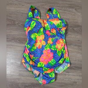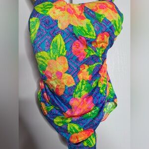 Turn heads in this bold vintage Fantasize bikini! Featuring a vibrant neon floral print with geometric accents, this retro two-piece brings major 90s poolside vibes. Designed for curve-friendly comfort with supportive structure and adjustable fit.