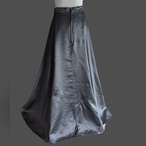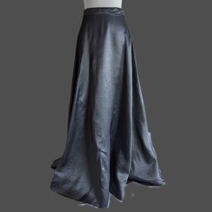 Vintage Formal Floor Length Maxi Skirt Satin Dark Grey Silver Chrome Small/Med