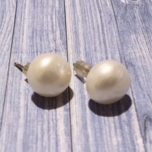 These elegant cultured pearl stud earrings are a timeless addition to any jewelry collection. Featuring lustrous 10mm pearls, they offer a classic, sophisticated look with a beautiful soft glow that complements both everyday and formal styles.