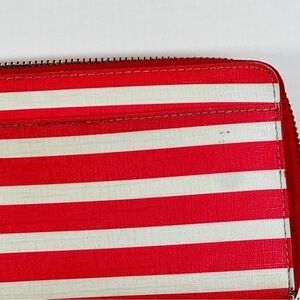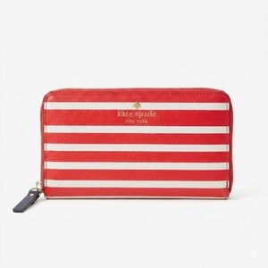 Kate Spade Zip Wallet Coral Cream Stripe Continental