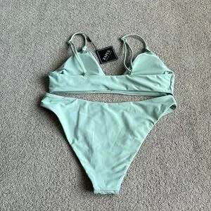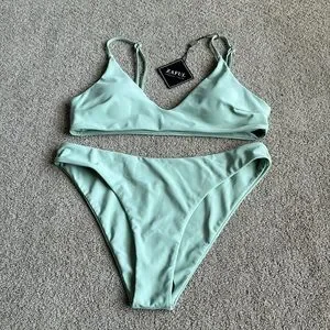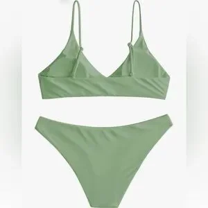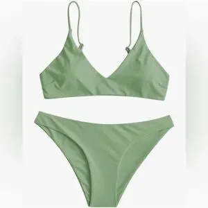 106 NWT ZAFUL Women's Solid Spaghetti Strap Bralette Bikini Set - Size Large