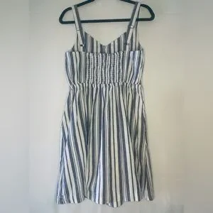 NWT Stylish Roxy women’s dress with navy and white stripes. XL , with adjustable straps, soft gathers at the waist , offer a flattering fit with a flow skirt, any pockets on the sides.