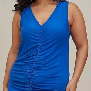 Torrid Blue Mini Bodycon Dress with Ruching, Size 2, Jersey, Sleeveless,…