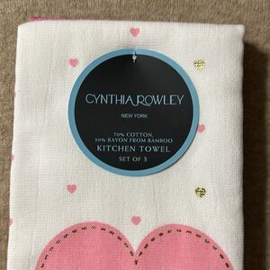 CR Valentine’s Day Pink White Metallic Gold Cotton Tea Kitchen Towels 3 Pack