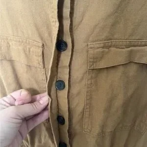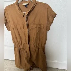 Chic light brown romper by Universal Thread. Features a classic collar and button details. With pockets.