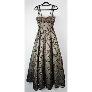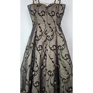 Coli Couture Black Gold Floral Beaded Prom Formal Gown Dress Size 8