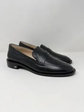 New Stuart Weitzman Emi Penny Loafer Black Leather Sz 8