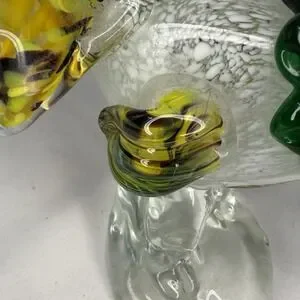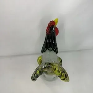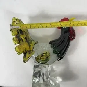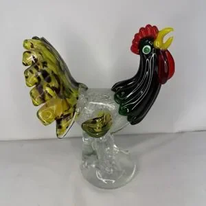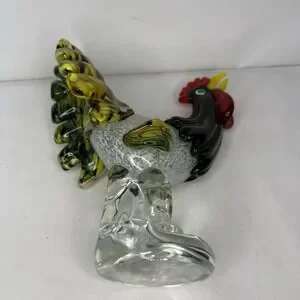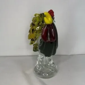 Vintage Murano Style Glass Rooster Bird Decor Colorful Clear Green Yellow
