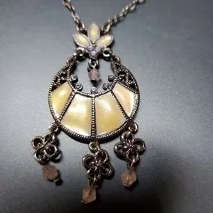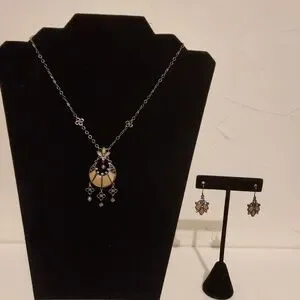 Retired jewelry set by Lady Remington. Necklace and earrings set in light purple and yellowish green color. More beautiful in person. Necklace can be worn from 15 inches to 18 inches long. Smoke free home. Used.