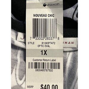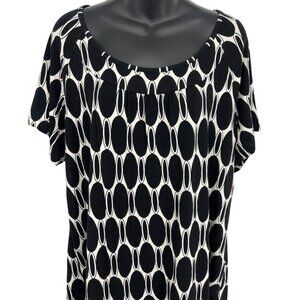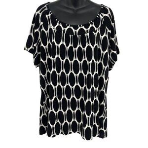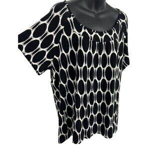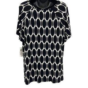 Jm Collection Women Black White Geometric Top Blouse Plus 1X Stretch Scoop New