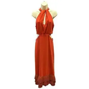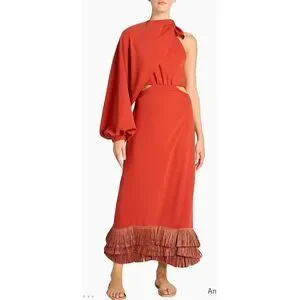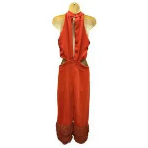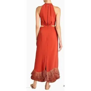 Johanna Ortiz Cut Out & Fringe-Hem Midi-Dress in Ankara Red NWT Size 4