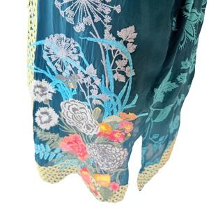 Johnny Was Tunic Women Large Teal Floral Embroidered Cupra Rayon Boho Split Neck