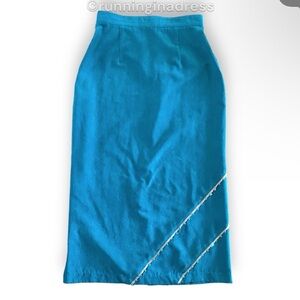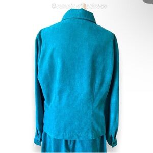 Vintage New Frontier Teal Suede 2-Piece Set Beaded Shirt Jacket & Midi Skirt L