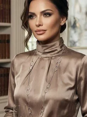 Elevate any look with this sophisticated silver-tone station necklace. This piece features a beautiful contrast of delicate cable chains and bold, textured open-oval links. Its generous length makes it incredibly versatile—wear it long for a dramatic, "Old Hollywood" statement (perfect for deep necklines or high-neck silk blouses) or double it up for a chic, layered look.