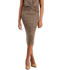 Bar III Animal Print Bodycon Midi Skirt Women XXS Molly Cheetah Tan Mob Wife NWT