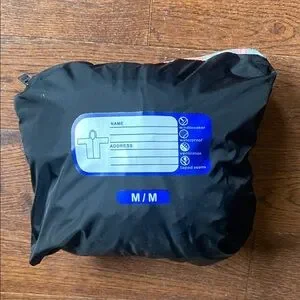 Features: Lightweight, water-resistant, elastic cuffs and hem, logo patch