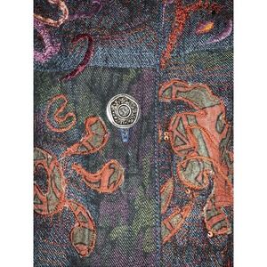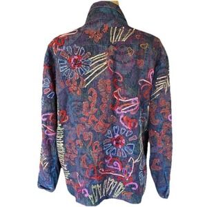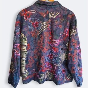 Chico's Denim Embroidered Boho Jacket Wearable Art Beaded Size XL /16 Maximalist