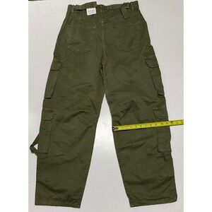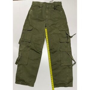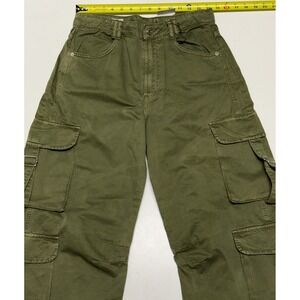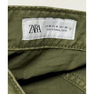 Zara Womens High Waisted Cargo Pants Olive Green Wide Leg Buckle Strap Size 6