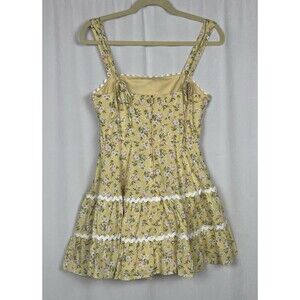 Trixxi Women’s Size Medium Yellow Floral Tiered Ric Rac Trim Mini Dress