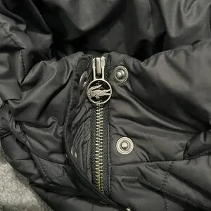 LaCoste Quilted Detachable Hood Rain Jacket Black Women