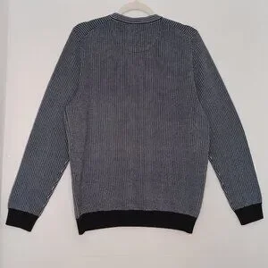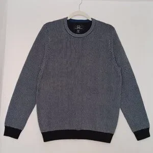 Men's Michael Strahan Black and White Small Checkered Wool Blend Sweater