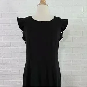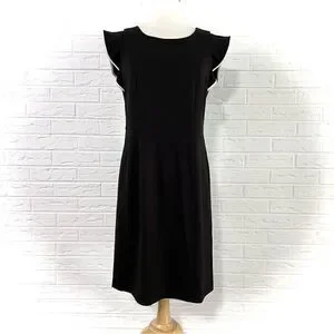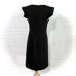 Talbots Black Dress with White Ruffle Trim Cap Sleeve Size 8 Petite
